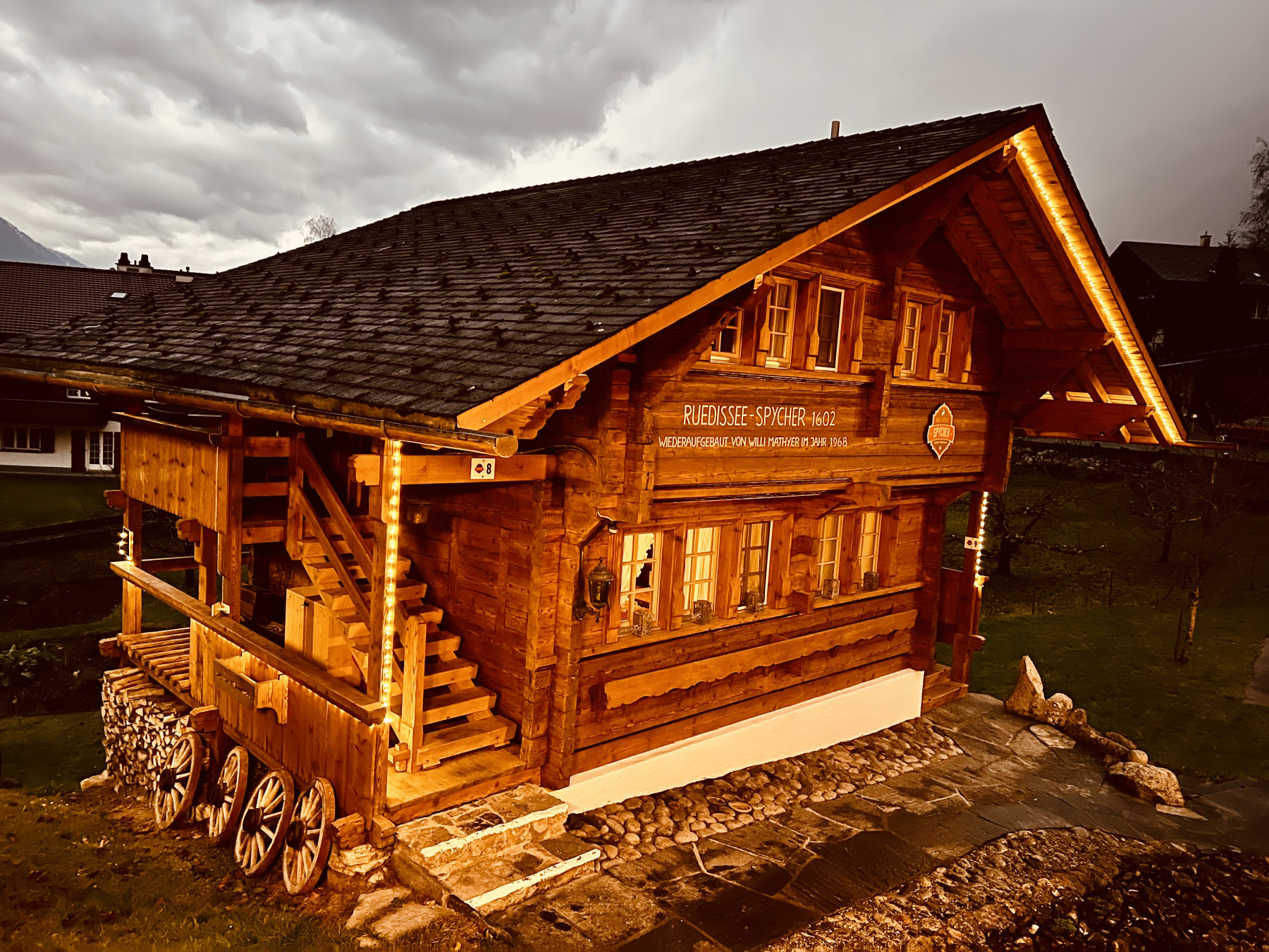 Ursprünglich, heimelig und standhaft seit dem Jahr 1602! Geniessen Sie die urchige Atmosphäre im historischen «Spycher» mit Blick auf den Brienzersee und die Brienzer Rothornbahn. Ein paar Neuerungen wurden gemacht, in den letzten 500 Jahren. So kommen Sie in den Genuss von Strom, WLAN und fliessend Wasser – und doch ist unser Spycher ein klassischer ‘Altbau’, in dem man das Leben über, unter und vor dem Zimmer spürt und hört.